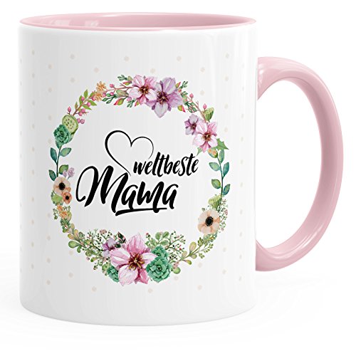MoonWorks Geschenk-Tasse Weltbeste Mama Geschenk für Mutter Muttertag Tasse mit Blumen und Innenfarbe rosa Unisize
