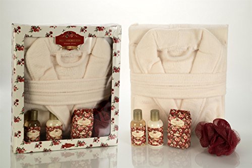 Bademantel im Wellness Set - mit Duschgel, Badesalz und Bodylotion - Pinie - Geschenkset
