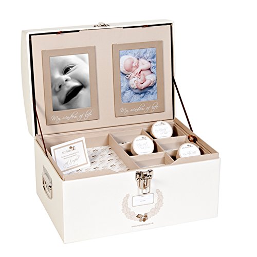 Los geht’s mit der Aufbewahrungsbox von Mybabylog. Die Babybox ist ein tolles Andenken, das für Mädchen und Jungen genutzt werden kann. In der kaffee-/cremefarbenen Holzbox kann man Fotos der Babys verstauen und beim Aufklappen sich immer wieder über die ersten Bilder erfreuen. Werdende Mütter werden sich auch über die kleinen Döschen freuen, die die Box beinhaltet. Darin können Milchzähne oder auch das erste Krankenhausarmband des Babys aufbewahrt werden. Auch Ultraschallbilder des Kindes können jungen Mütter in der Aufbewahrungsbox von Mybabylog als Erinnerung verstauen. Ist das Kind einmal groß geworden, wird es sich auch über diese schönen Erinnerungen freuen.